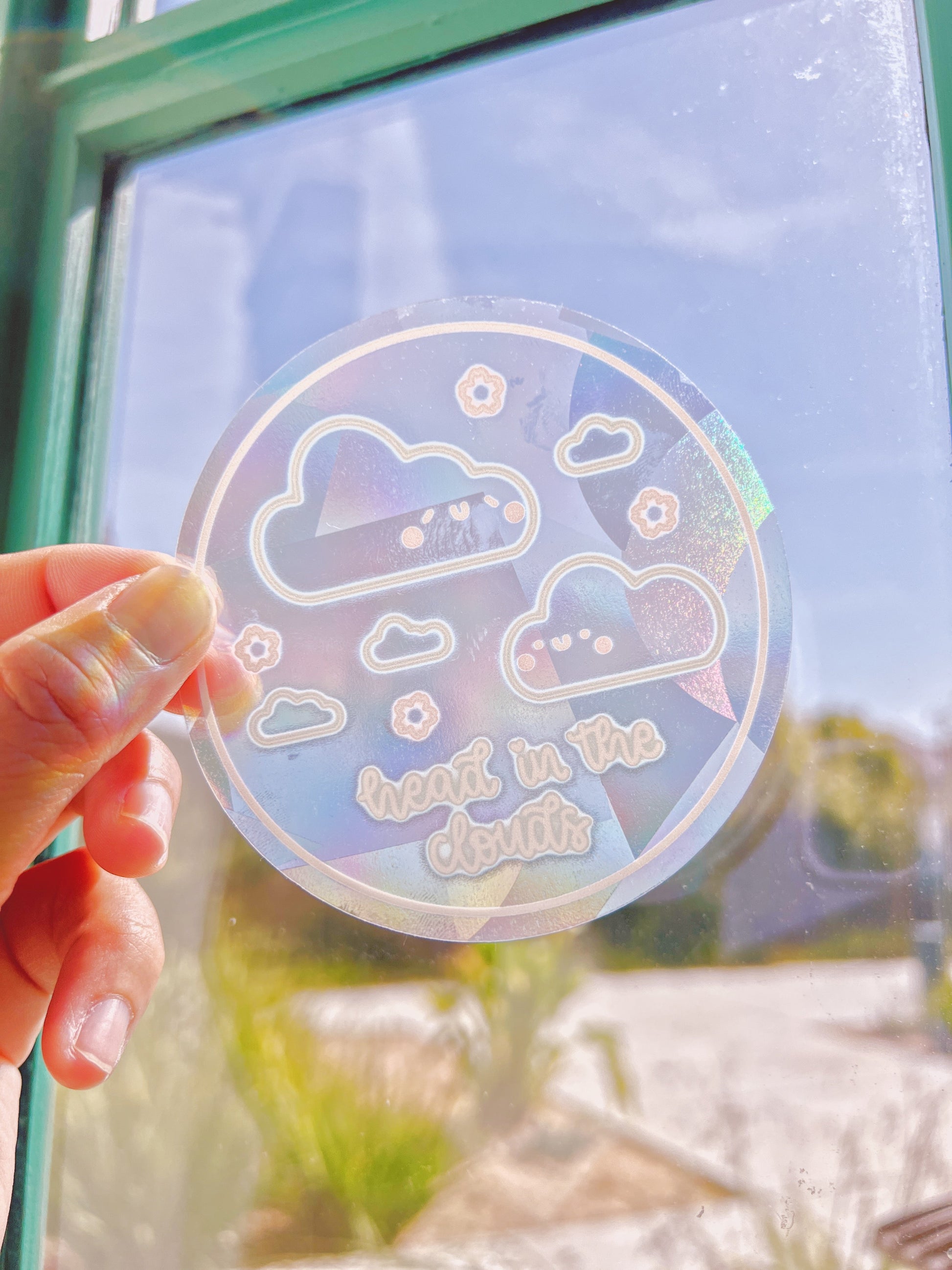 These 3.5” Good Vibes Suncatcher Decals are designed to be as inspiring as they are adorable! These clear holographic stickers refract sunlight into gorgeous rainbows! Add these stickers to a window or glass to add some light and inspiration to your day! 3 designs and messages are available: Head in The Clouds, Bloom, and Keep Growing. Get some good vibes today!